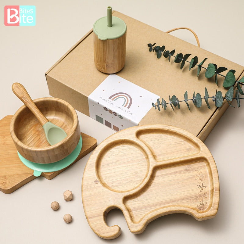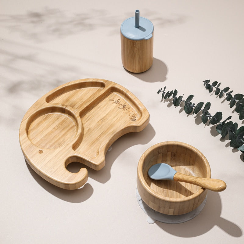Mit diesem süssen Set wird Ihr Liebling das Essen lieben. Es besteht aus natürlichem Bambus und ist BPA frei. Mit den praktischen Saugnäpfen unter dem Geschirr, kann man es gut auf dem Tisch befestigen. Das süsse Elefanten Design ist der echte Hingucker.